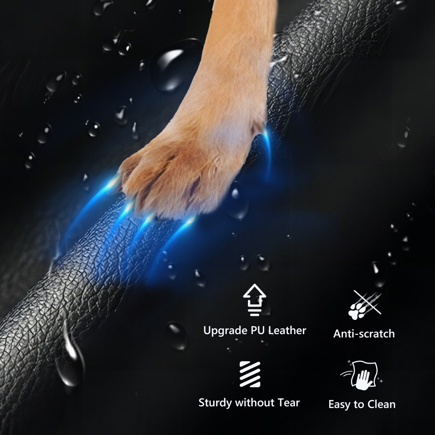 This is made of upgraded imitation leather, which is softer and more wear-resistant and scratch-resistant than oxford cloth. No need to worry about being scratched by pets. At the same time it is better in waterproof, cleaning also more convenient and quick, do not have to worry about dirt sticking in the cover, it is easier to clean.